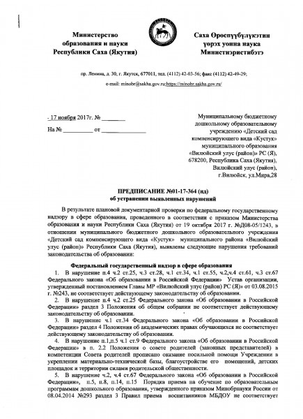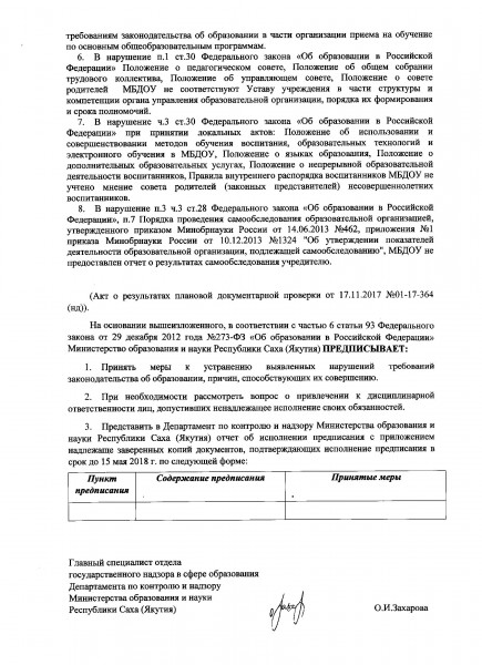 Предписания органов, осуществляющих государственный контроль (надзор) в сфере образования, отчеты об исполнении таких предписаний (при наличии)